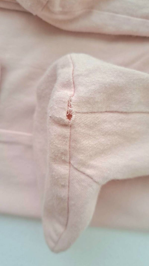Es hat leider ein kleines Loch unten an den Füssen, daher der reduzierte Preis.