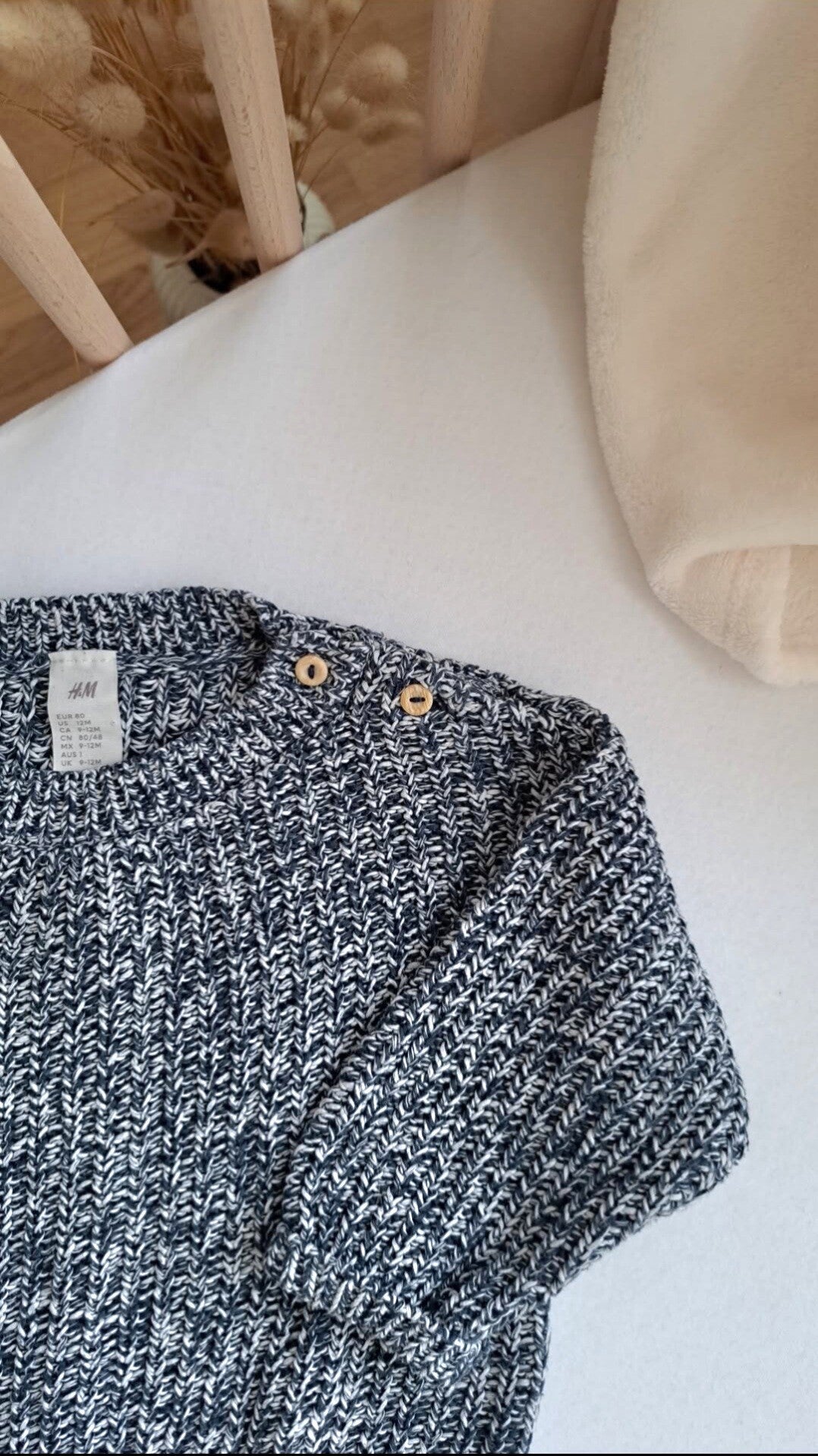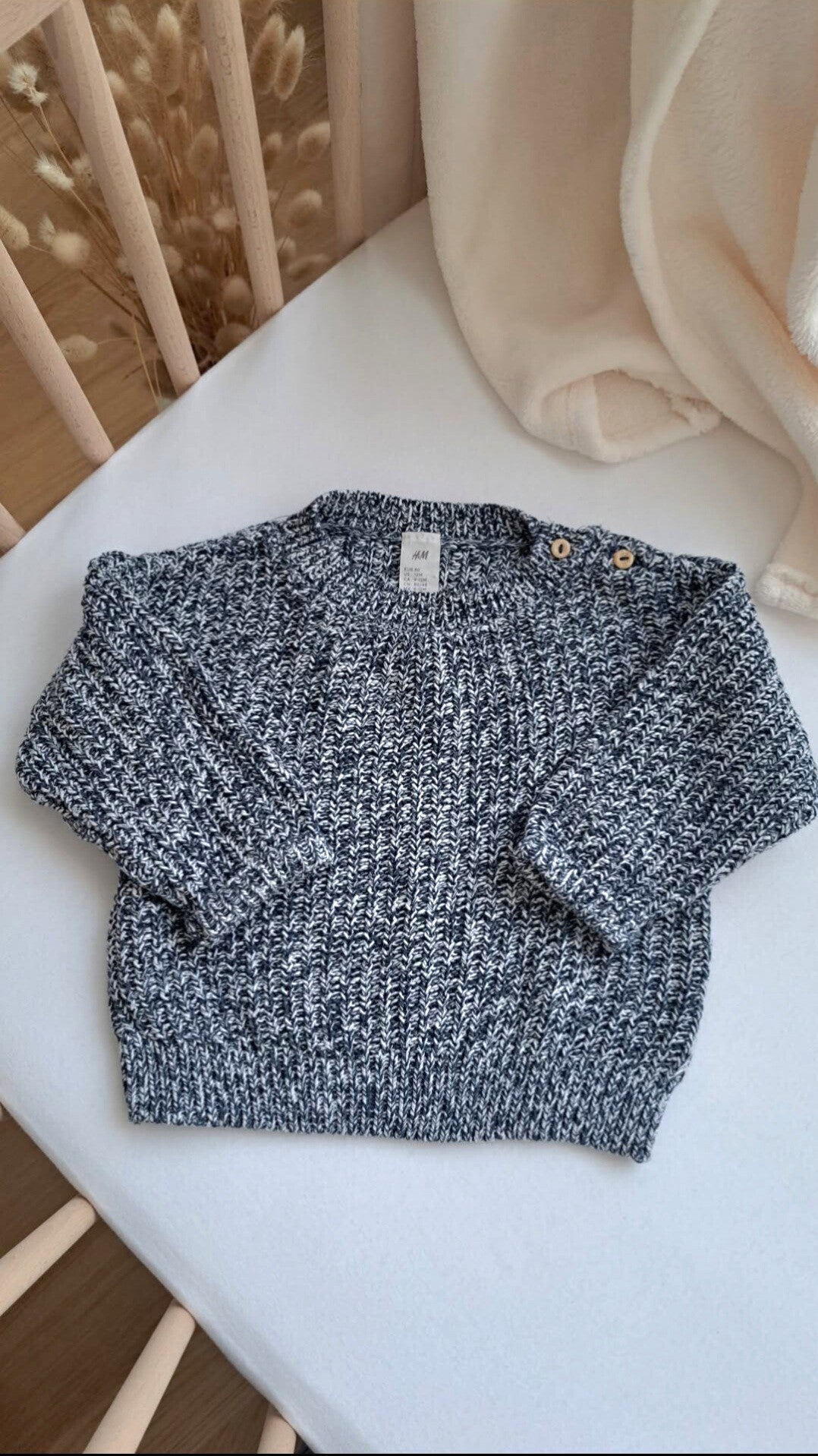 Grau-weisser Pullover von H&M in der Grösse 80.