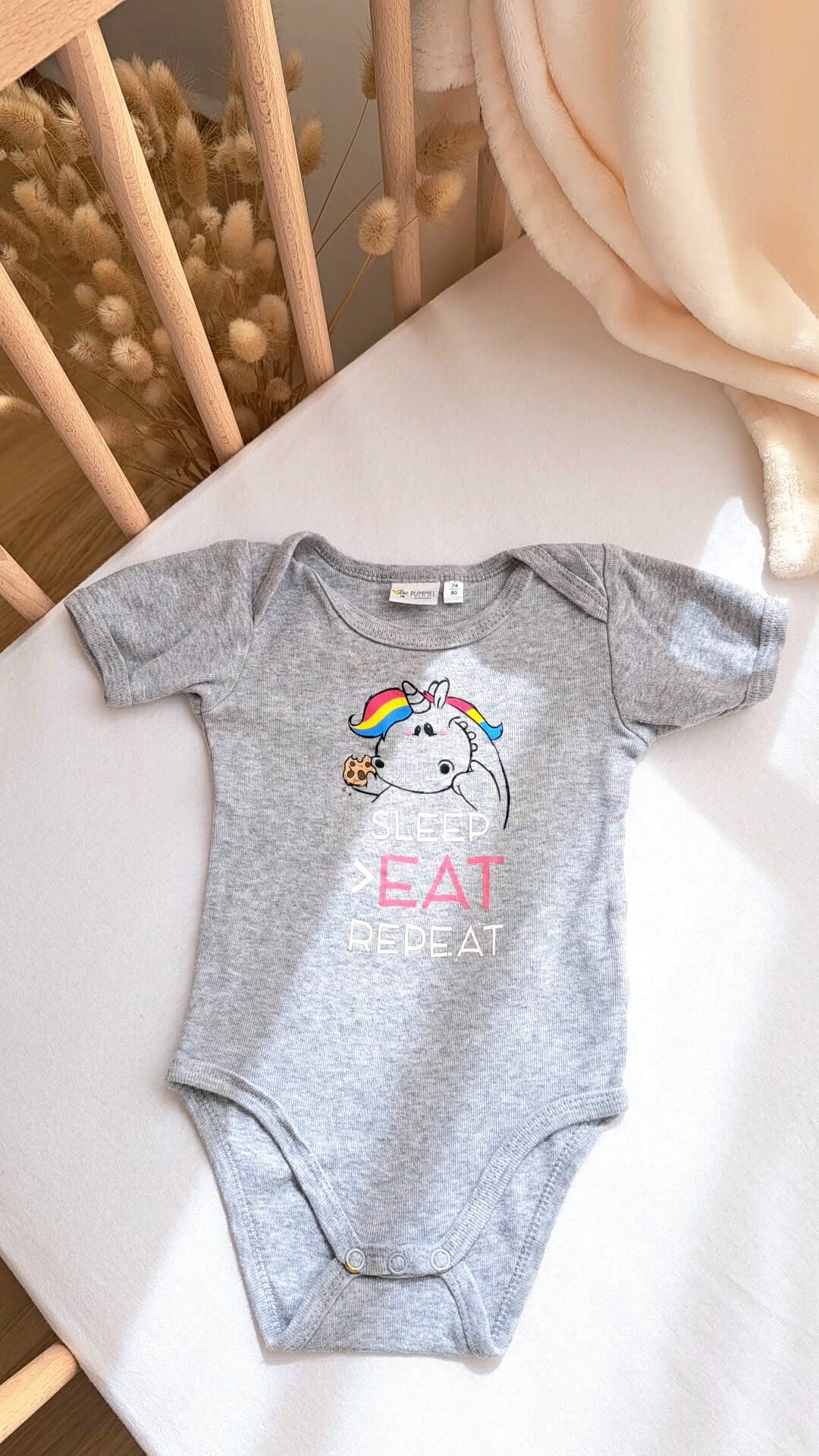 Kurzarm-Body in der Grösse 74/80. Es ist etwas Farbe bei den Knöpfen abgesplittert, aber sonst in super Zustand.