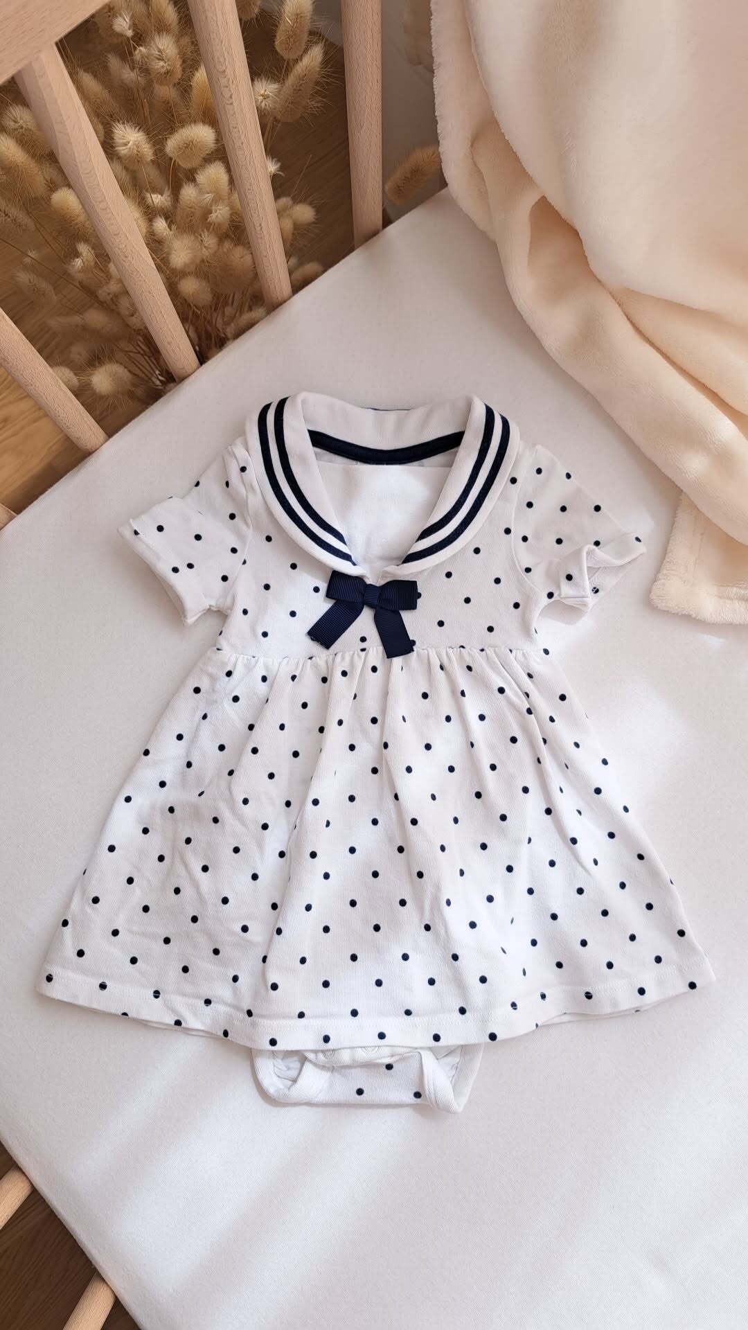 Weisses Kleid mit schwarzen Punkten und integriertem Body von H&M in der Grösse 56.