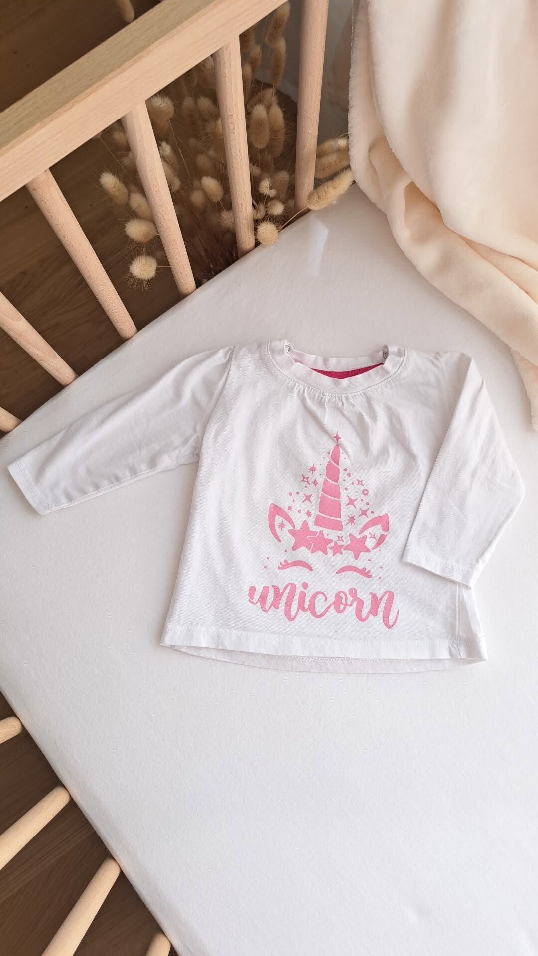 Weisser, dünner Pullover mit Unicorn Motiv von der Marke Ergee in der Grösse 68.