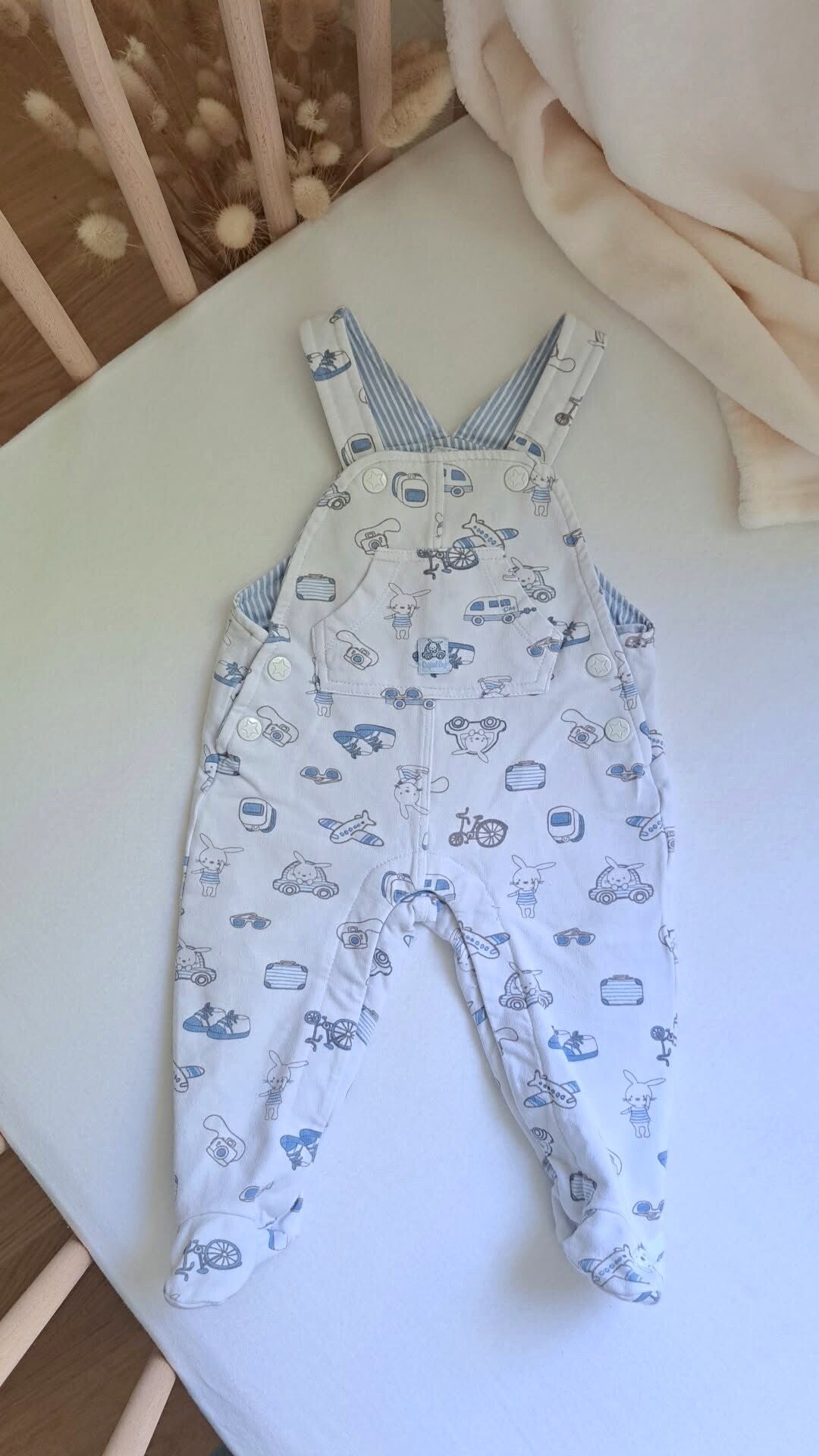 Süsse und sehr weiche Latzhosen mit Füsschen in der Grösse 3/6.