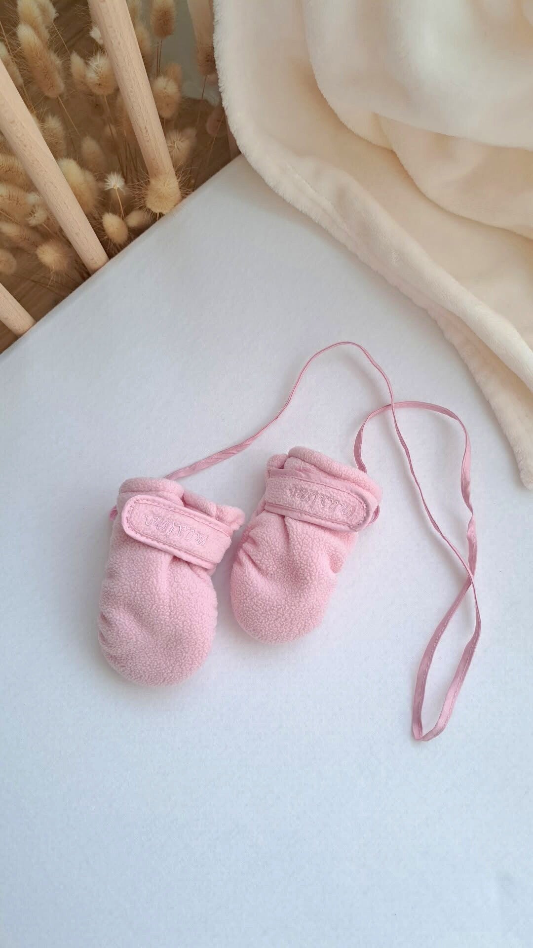 Warm gefütterte Babyhandschuhe mit Klettverschluss in rosa.