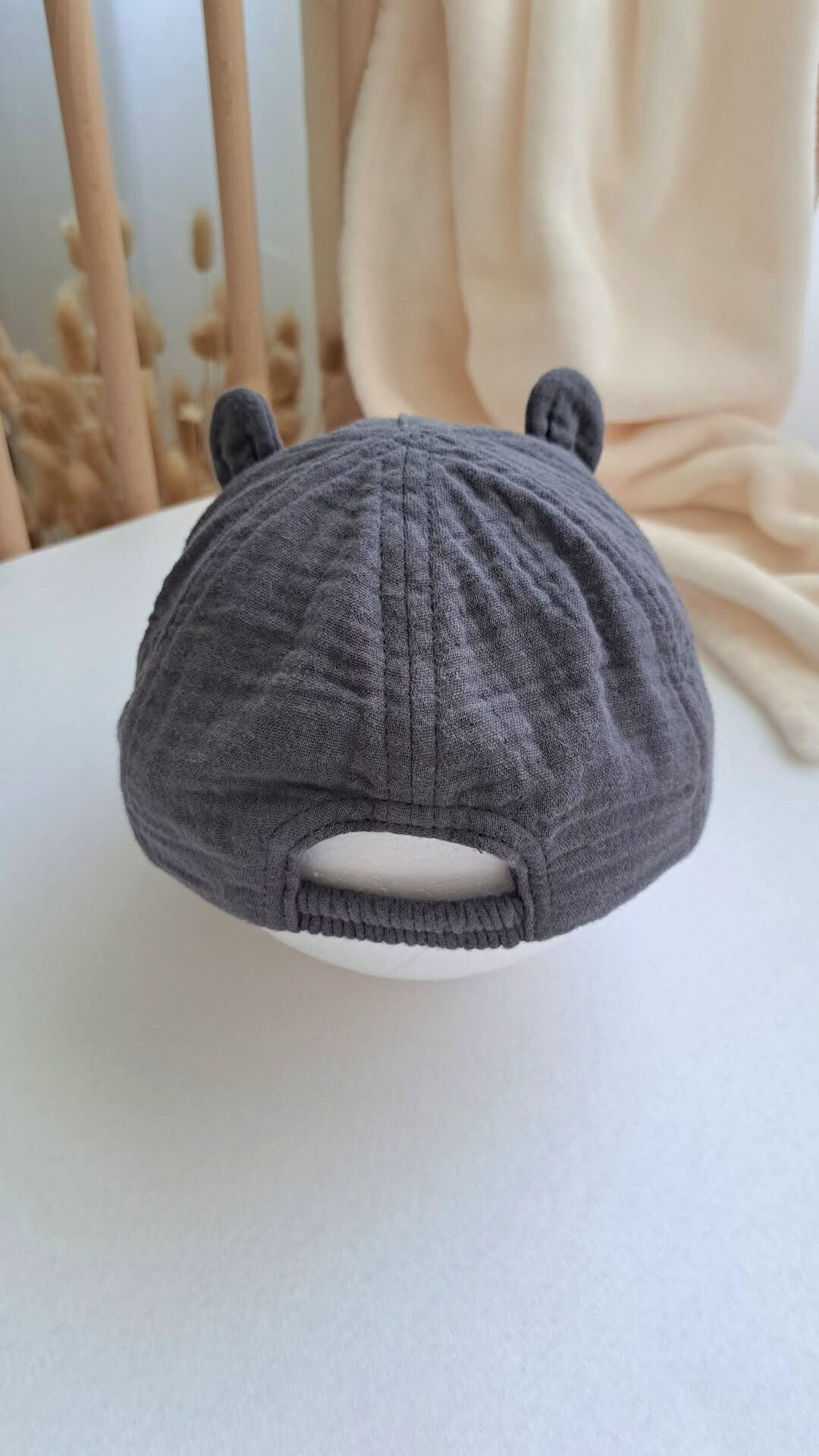 Süsses dunkelgraues Cap mit Gummizug von H&M in der Grösse 86/62.